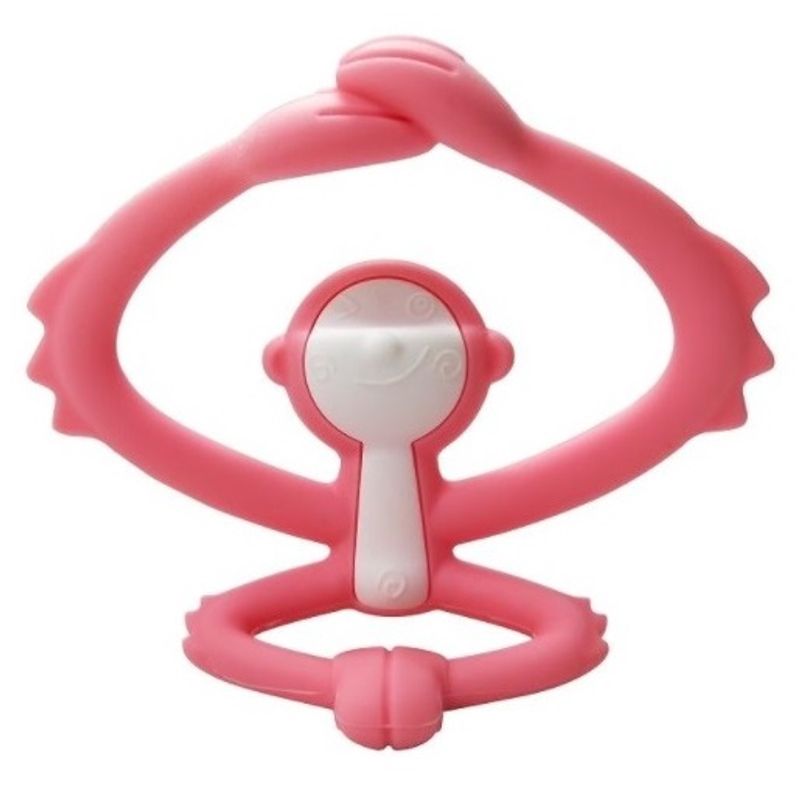 - designul special de forma unei maimute haioase are o suprafata cu rizuri pentru masajul gingiilor bebelusului;