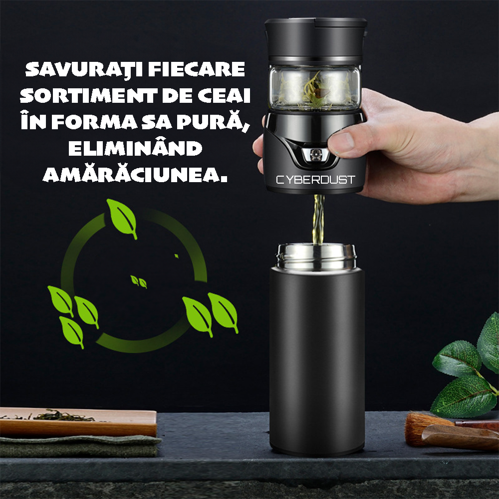 Infuzor de ceai CYBERDUST, Eco-friendly, Sticla dubla, Termos cu sita pentru ceai din otel inoxidabil Infuzor de ceai CYBERDUST, Eco-friendly, Sticla dubla, Termos cu sita pentru ceai din otel inoxidabil