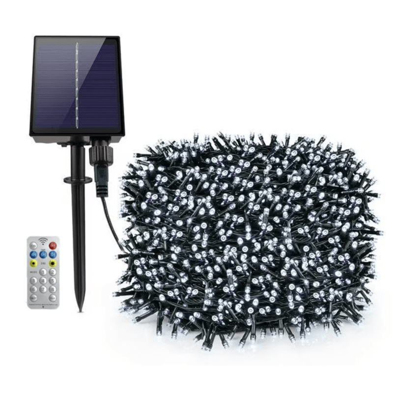 Instalatie solara 1000 LED de 100 metri cu telecomanda pentru exterior ALB RECE HS Instalatie solara 1000 LED de 100 metri cu telecomanda pentru exterior ALB RECE HS