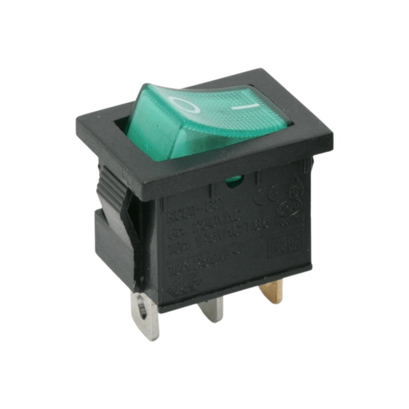 Intrerupator basculant 1 circuit 3 pini 6.5A 250V OFF-ON verde cu retinere Intrerupator basculant 1 circuit 3 pini 6.5A 250V OFF-ON verde cu retinere