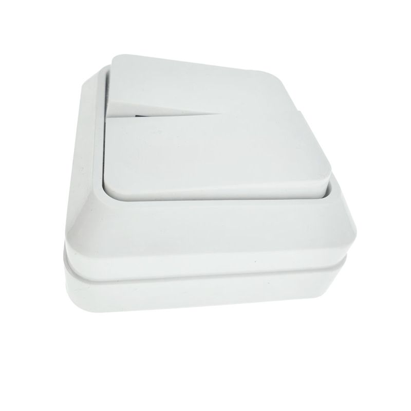 Intrerupator cu 2 butoane, aplicat, cu rama, 80 x 80 x 35 mm, alb Intrerupator cu 2 butoane, aplicat, cu rama, 80 x 80 x 35 mm, alb