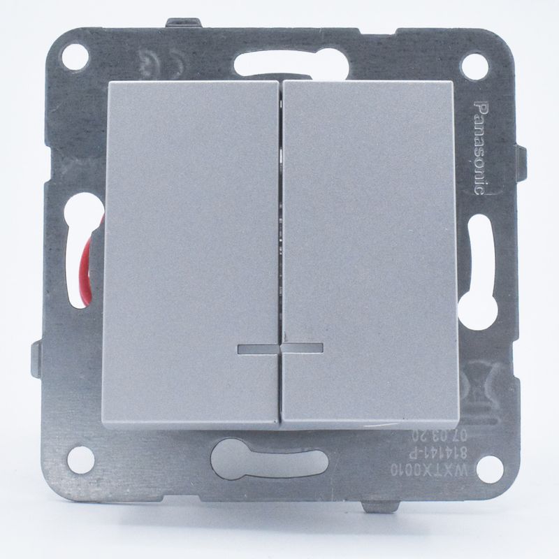 Intrerupator dublu cu led, 10A, IP20, Argintiu, Panasonic Arkedia Slim/Karre Plus Intrerupator dublu cu led, 10A, IP20, Argintiu, Panasonic Arkedia Slim/Karre Plus
