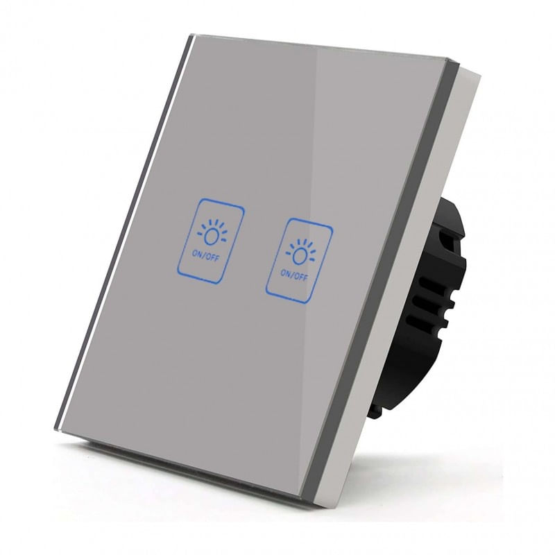 Intrerupator Touch Techstar® TG02, Sticla Securizata, Design Modern, Iluminare LED, 2 Faze, Gri Intrerupator Touch Techstar® TG02, Sticla Securizata, Design Modern, Iluminare LED, 2 Faze, Gri