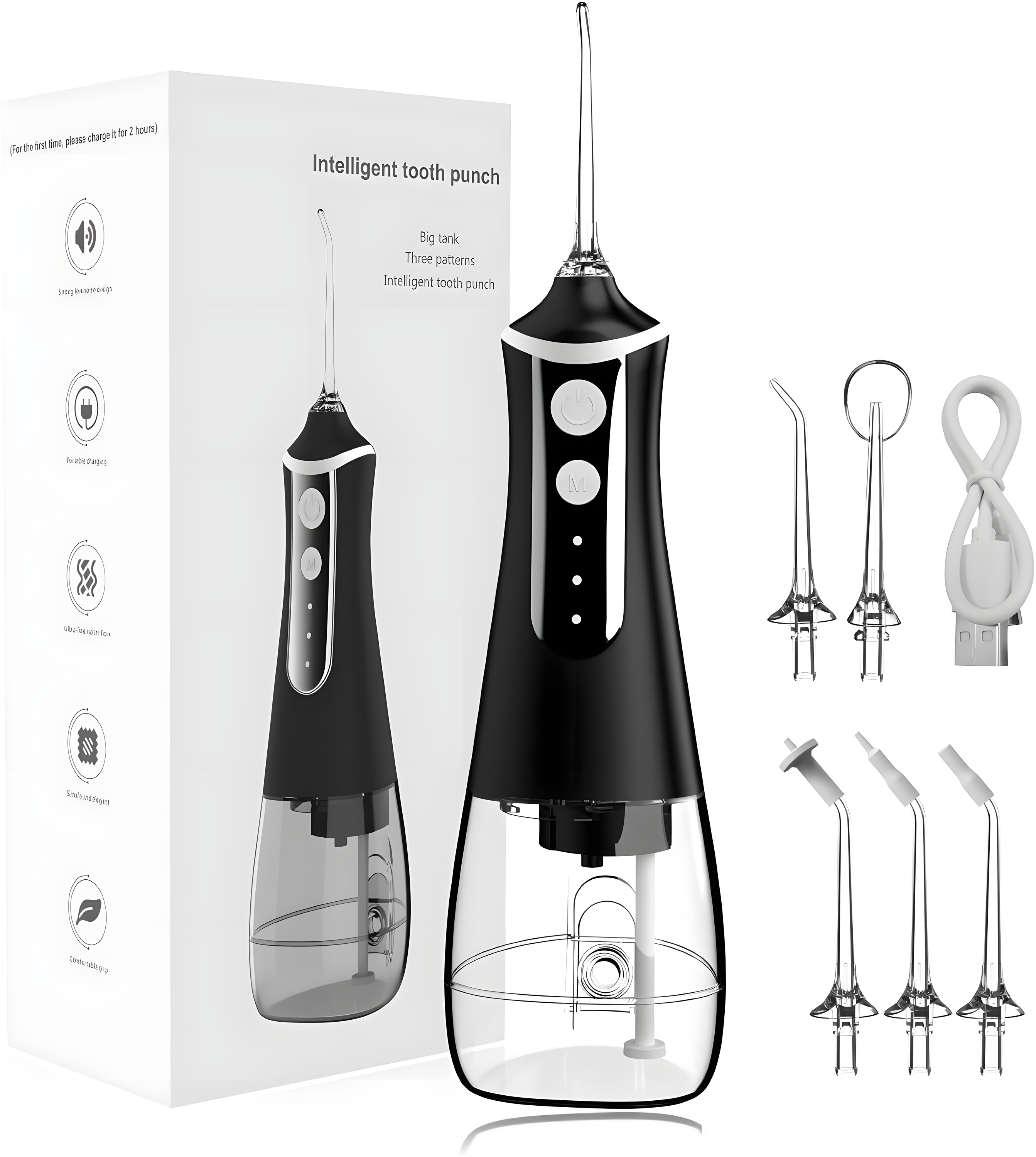 Irigator Bucal, BLEKSY® Profesional Pentru Curatarea Dintilor si Gingiilor, Rezervor 300ml, 5 Capete Intradentare, Negru Irigator Bucal, BLEKSY® Profesional Pentru Curatarea Dintilor si Gingiilor, Rezervor 300ml, 5 Capete Intradentare, Negru