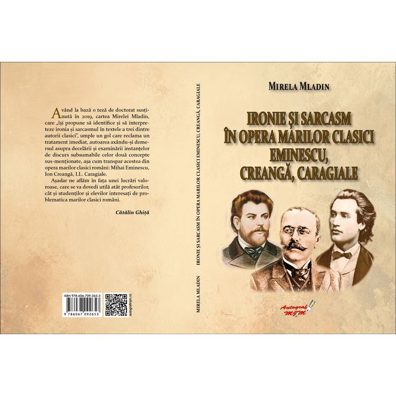 Aparuta la Ed. MJM din Craiova si avand la baza o teza de doctorat sustinuta in 2019, cartea Mirelei Mladin, care „isi propune sa identifice si sa interpreteze ironia si sarcasmul in textele a trei dintre autorii clasici”, umple un gol care reclama un tratament imediat, autoarea axandu-si demersul asupra decelarii si examinarii instantelor de discurs subsumabile celor doua concepte sus-mentionate, asa cum transpar acestea din opera marilor clasici romani: Mihai Eminescu, Ion Creanga, I.L. Caragiale. Ironia, definita sintetic drept „intermediar intre intentia oamenilor si rezultatele contrare, si sarcasmul, definit sintetic drept „asertiune in cadrul careia sensul intentionat este diferit de sensul afirmatiei, implicand o remarca insultatoare”, sunt termeni pivot, gratie carora o paleta larga de subtexte se pot evidentia si exploata in creatia literara, furnizand, simultan, o cheie hermeneutica dintre cele mai profunde. Mirela Maldin reuseste sa ofere un tablou persuasiv al ironiei si al sarcasmului, asa cum se coaguleaza acesta din opera marilor clasici autohtoni.