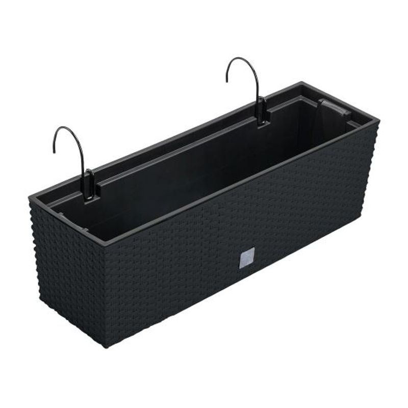 Jardiniera decorativa, suport metalic, imitatie ratan, antracit, 58 x 18 x 19.5 cm, Rato Case W