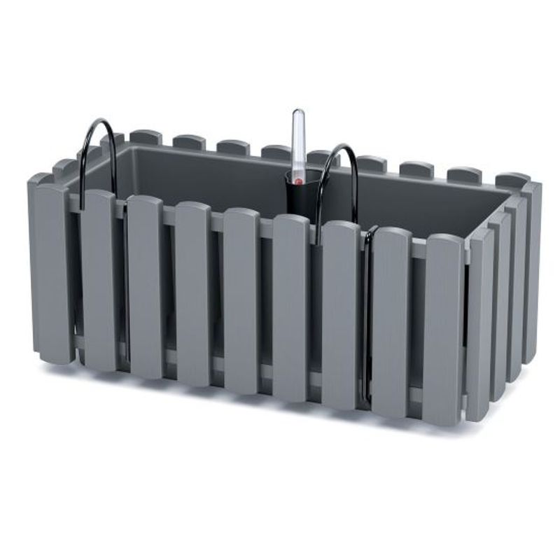 Jardiniera decorativa, suport metalic, sistem irigare, gri, 38x18x16.2 cm, Boardee Fencycase W