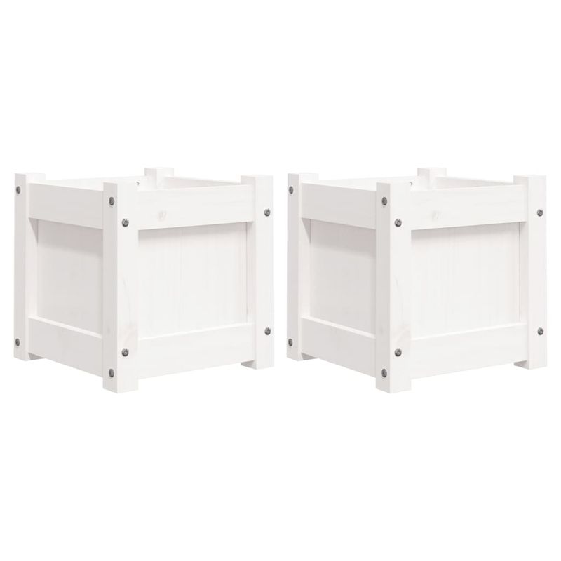 Jardiniere de gradina, 2 buc., alb, lemn masiv de pin Jardiniere de gradina, 2 buc., alb, lemn masiv de pin