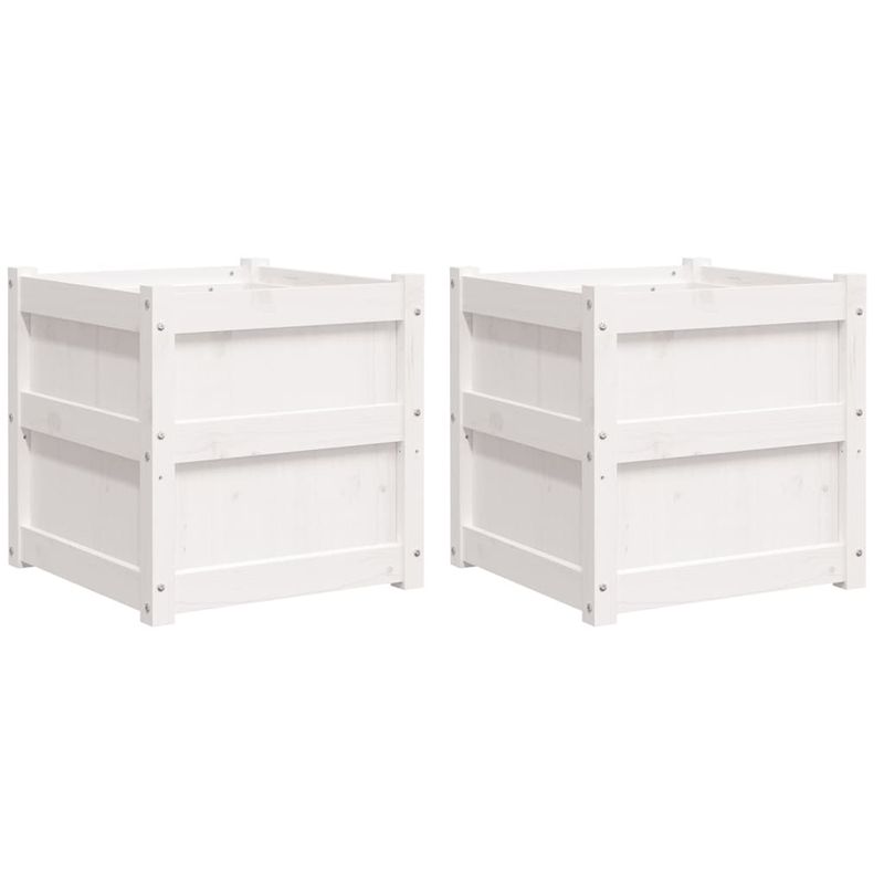 Jardiniere de gradina, 2 buc., alb, lemn masiv de pin Jardiniere de gradina, 2 buc., alb, lemn masiv de pin