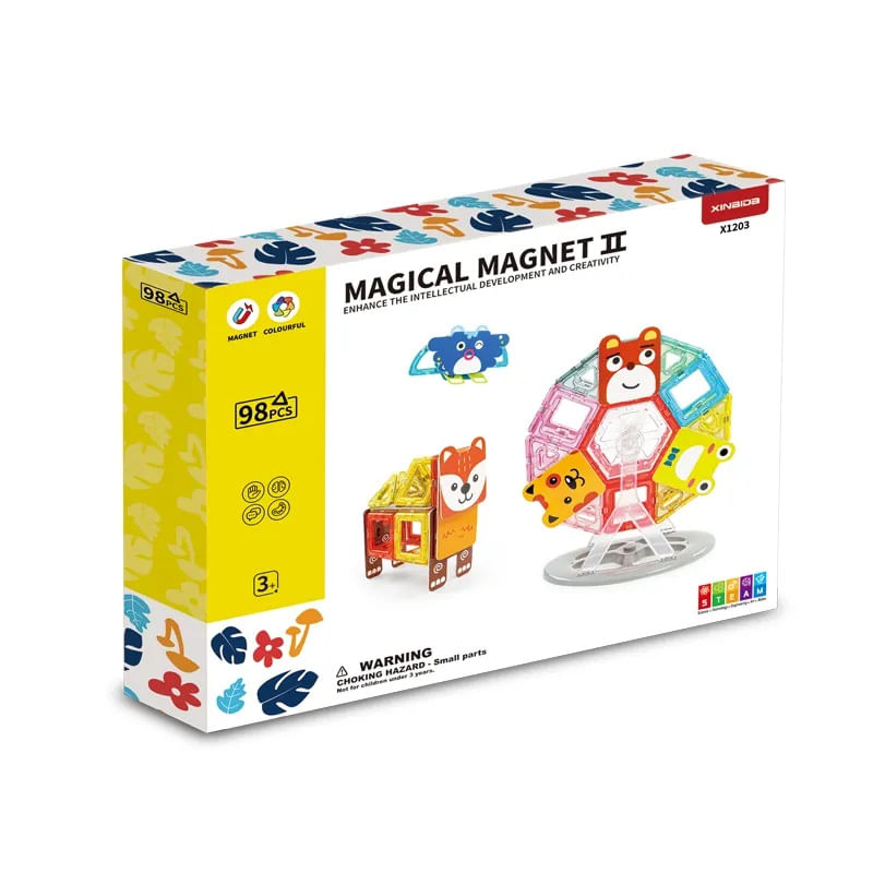 Joc Educativ si Creativ, Set magnetic de construit cu animalute, 98 Piese, 3 ani+ Joc Educativ si Creativ, Set magnetic de construit cu animalute, 98 Piese, 3 ani+