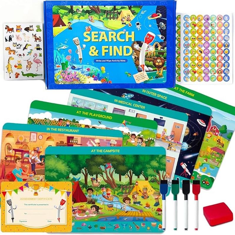 Joc interactiv Cauta si gaseste, 6 planse de activitati reutilizabile, 4 markere cu stergere uscata, 3 ani+, EduJucarii Joc interactiv Cauta si gaseste, 6 planse de activitati reutilizabile, 4 markere cu stergere uscata, 3 ani+, EduJucarii