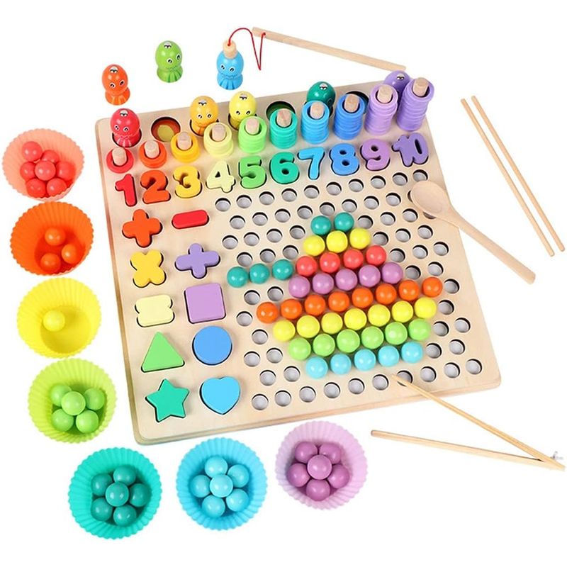 Caracteristici Sortare Dupa Culori si Forme Geometrice: Setul include 77 de bile colorate din lemn, forme geometrice, cerculete, toate in diferite culori oferind copiilor posibilitatea de a sorta si asocia dupa criterii precum culoarea si forma, contribuind la dezvoltarea abilitatilor de recunoastere si asociere. Logaritmic cu Stivuire Piese: Jocul introduce un element logaritmic, in care copiii pot stivui piesele pentru a crea structuri si modele diverse. Aceasta activitate incurajeaza coordonarea ochi-mana si dezvolta abilitatile motorii fine. Operatii Matematice: Copiii sunt initiati in lumea matematicii prin intermediul cifrelor de la 1 la 10 si a semnelor pentru operatii matematice, oferind o modalitate interactiva de a exersa operatiile simple de adunare si scadere. Pescuit Magnetic: Jocul include o componenta de pescuit magnetic, cu 8 pestisori magnetici, adaugand o dimensiune distractiva si provocatoare. Copiii pot folosi o bagheta magnetica pentru a "prinde" pestisorii, dezvoltand astfel abilitatile de coordonare si indemanare. Joc Mozaic de indemanare: joc mozaic de indemanare si dexteritate cu bile colorate si ustensile diferite (penseta/lingura/betisoare chinezesti, astfel ca gradul de dificultate este crescator). Aceasta stimuleaza abilitatile motorii fine ale copiilor, puterea de observare, concentrare si rabdarea. Se pozitioneaza plansele sub suportul perforat si se aranjeaza bilele colorate conform modelului sau se stivuiesc in structuri. Incepeti prin a folosi betisoarele, lingurita si penseta pentru a apuca bilutele din lemn. Invatati abilitati de numar timpuriu, modelare, rezolvarea problemelor, procesare vizuala si multe altele. Penseta, lingurita sau betisoarele consolideaza abilitatile motrice fine, iar cardurile de sortare ofera indicii vizuale care sustin succesul. Bilele din lemn vin intr-o varietate de culori vibrante, permitand copiilor sa exploreze si sa invete despre culori intr-un mod hands-on. Accesorii Pentru Sortare: Setul include o gama de accesorii utile, cum ar fi o lingura, o spatula, betisoare si cupe colorate din silicon pentru a adauga un nivel suplimentar de complexitate si de provocare in joc. Puzzle 3D cifre : placa contine cifre de la 1 la 10 , divers colorate pe care copii le pot potrivi in formele lor. Joc Tip Montessori: Inspirat de principiile pedagogiei Montessori, acest joc promoveaza autonomia si invatarea activa, oferind copiilor posibilitatea de a explora si invata in propriul ritm. Educatie Prin Joc: Jocul Logarithmic 6 in 1 este conceput pentru a face invatarea distractiva si interactiva, transformand procesul educational intr-o aventura captivanta pentru cei mici. Calitate Premium : Bilele din lemn si accesoriile sunt realizate din materiale de inalta calitate si sigure pentru copii. Beneficii Dezvolta abilitatile cognitive si motorii fine ale copiilor, imbunatateste dexteritatea mainilor; Incurajeaza gandirea analitica si rezolvarea de probleme; Sprijina recunoasterea formelor, culorilor si a numerelor; Stimuleaza creativitatea si imaginatia. Cu Jocul Logarithmic 6 in 1, invatarea devine o experienta distractiva si interactiva pentru cei mici, oferindu-le o baza solida pentru dezvoltarea lor viitoare. Aducand impreuna educatia si jocul, acest set este un instrument ideal pentru a transforma orele de joaca in oportunitati de invatare valoroase. Pachetul include: - 7 pahare colorate din silicon, pentru bile - 70 bile lemn (cate 10 din fiecare culoare) - 1 penseta din lemn - 1 lingura din lemn - 1 set betisoare chinezesti din lemn - 8 pestisori lemn cu cap magnetic - 2 undite lemn cu cap magnetic - 5 planse cu modele - cifre 1-10 - 10 forme geometrice si semne operatii matematice - inele colorate diferit pentru formarea de multimi SPECIFICATII: Greutate: aproximativ 400 g Material : Lemn vopsit in culori non-toxice si silicon Culoare : Multicolor Varsta recomandata : 3 ani + Dimensiuni: Ambalaj: 30 x 30 x 8 cm
