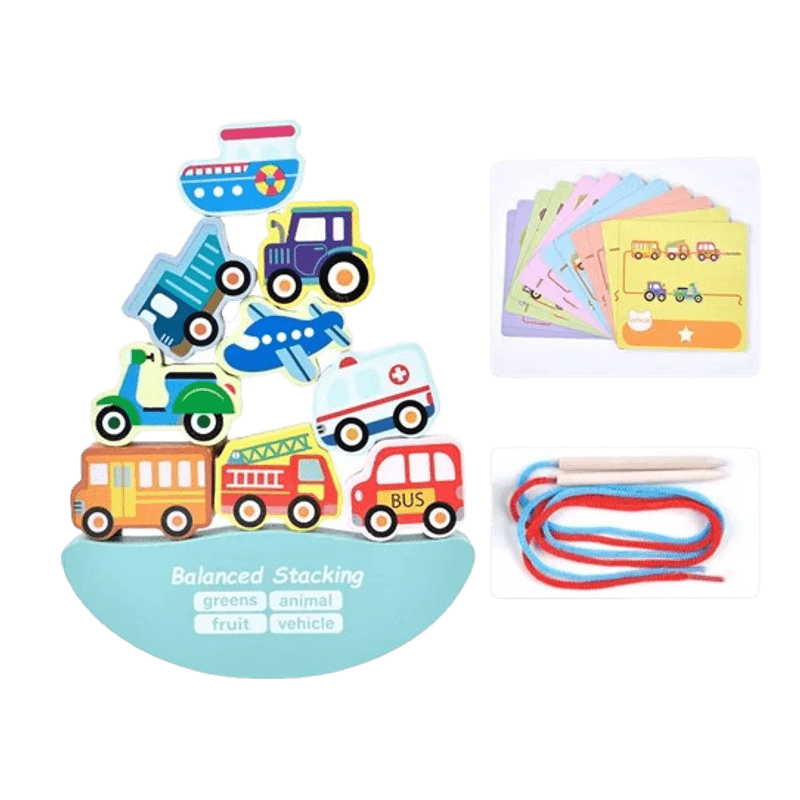 Daca sunteti in cautarea unei jucarii de echilibru si insiruire din lemn, acest set este perfect. Ele pot fi stivuite cu usurinta plat sau echilibrate intr-o varietate de moduri atunci cand stau vertical, in picioare.