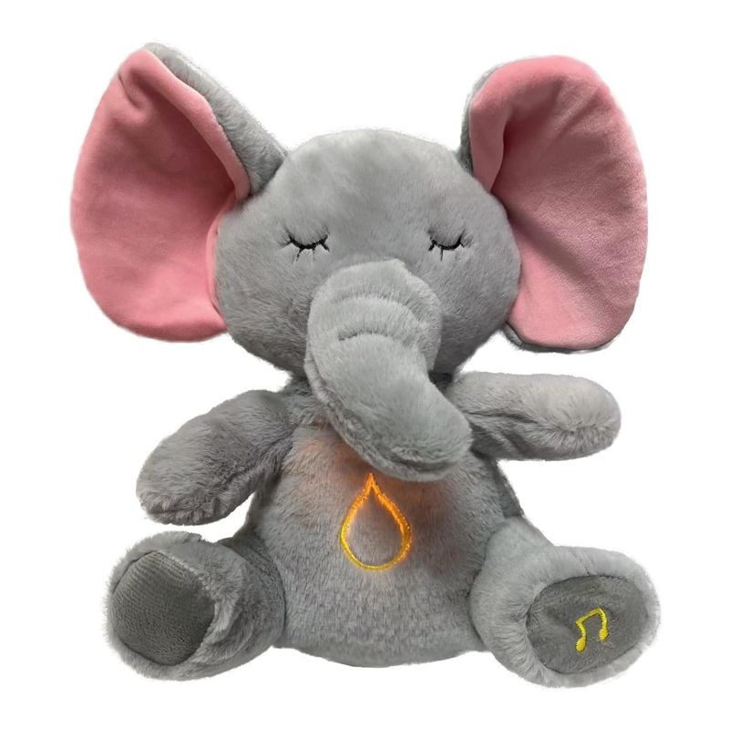 Jucarie de plus elefantul Dumbo KidMania® cu functie de respiratie, melodii si lumina pentru copii, 30 cm