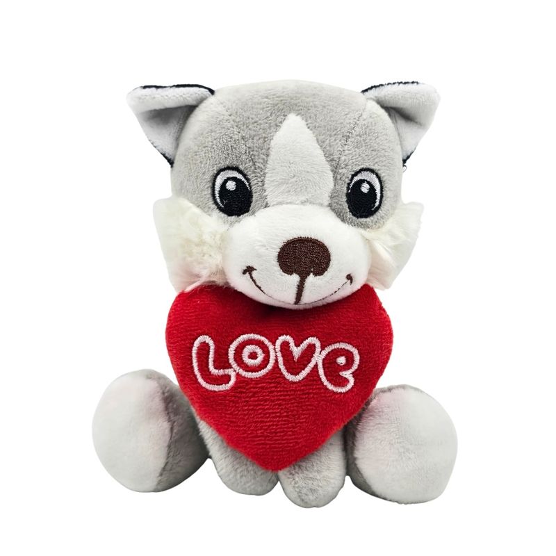 Jucarie din plus, catelus cu inimioara, culoarea gri, 15 cm Jucarie din plus, catelus cu inimioara, culoarea gri, 15 cm