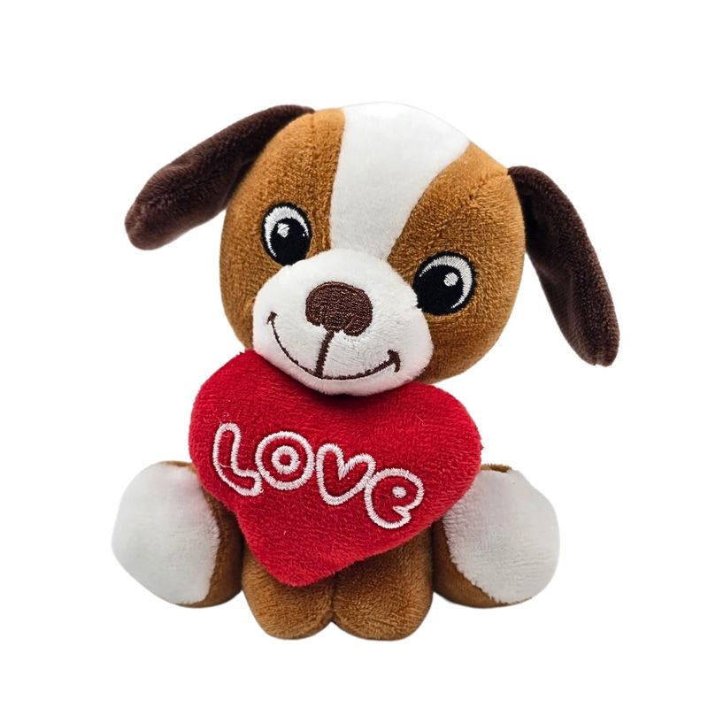 Jucarie din plus, catelus cu inimioara, culoarea maro, 15 cm Jucarie din plus, catelus cu inimioara, culoarea maro, 15 cm