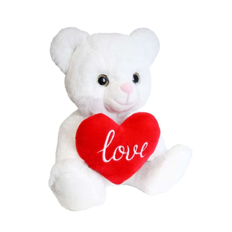 Jucarie din plus, ursulet alb cu inimioara in brate, 20 cm Jucarie din plus, ursulet alb cu inimioara in brate, 20 cm