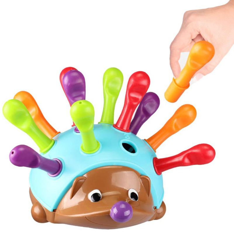 Jucarie educativade motricitate, sortare si numarare culori, Ariciul Spike cu tepi colorati, albastru , 18 luni+