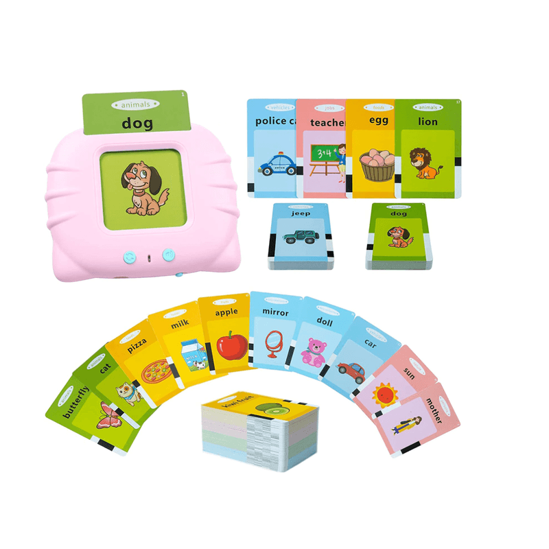 Aceasta jucarie pentru terapie logopedica include un cititor de carduri si 112 carduri flash cu doua fete care acopera 12 subiecte precum forme, culori, animale, necesitatile zilnice, transporturi, alimente, fructe, legume, costume, natura, persoane si locuri de munca. Este o jucarie grozava ce poate ajuta copii de peste 2 ani sa invete cuvinte in limba engleza, poate ajuta pentru a imbunatati capacitatea cognitiva, a exercita auzul si a construi vocabularul. Jucarii senzoriale grozave pentru copiii cu autism.
