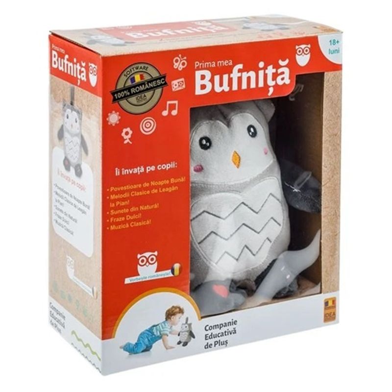 Jucaria educativa in forma de bufnita este un companion interactiv ideal pentru copiii de 3+ ani, combinand sunete, povesti in limba romana si un design atragator pentru a stimula curiozitatea si invatarea timpurie. Cu dimensiuni de 46x12x34 cm, aceasta bufnita dragalasa este fabricata din plastic si poliester, fiind placuta la atingere si rezistenta in utilizare.