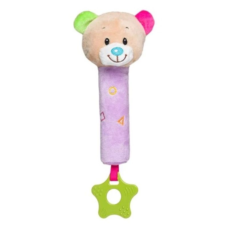Jucarie pentru dentitie sub forma de ursulet, Bebelusi si copii 0+ ani, Cu zornaitoare, Plus, 10x18 cm, Lila
