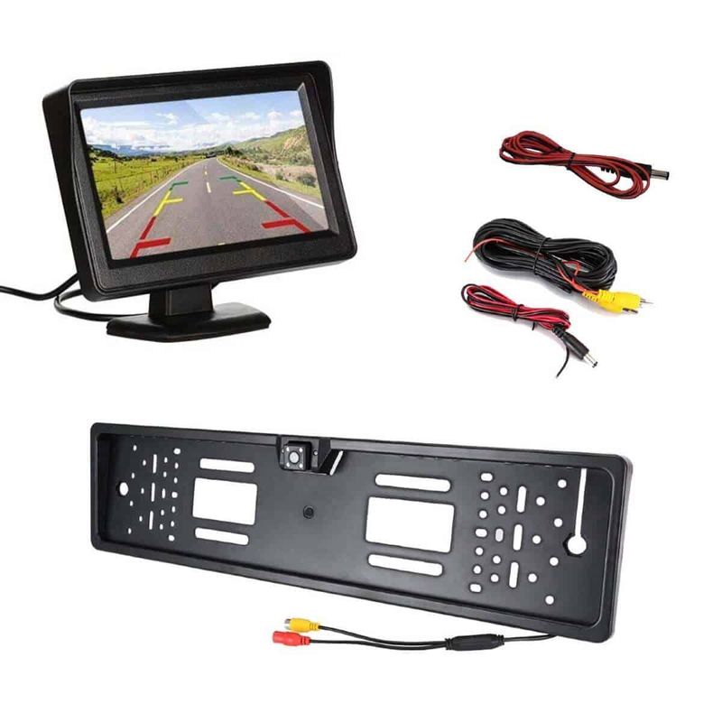 Kit 2 in 1, suport numar inmatriculare cu camera marsarier si monitor cu picior Kit 2 in 1, suport numar inmatriculare cu camera marsarier si monitor cu picior