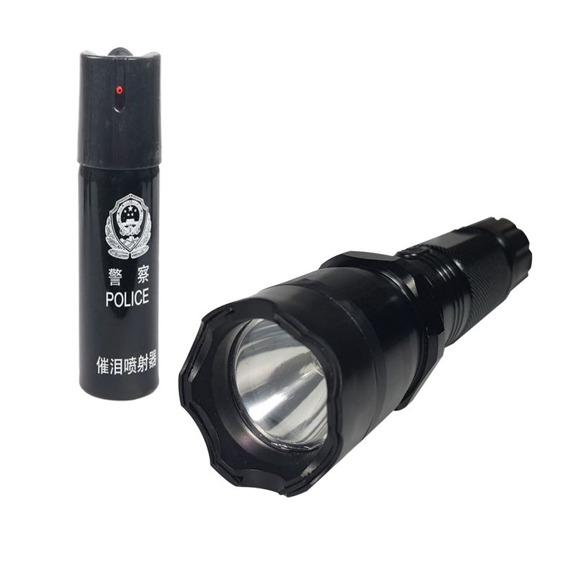 Kit autoaparare format din lanterna cu electrosoc si spray lacrimogen, metalic, negru Kit autoaparare format din lanterna cu electrosoc si spray lacrimogen, metalic, negru