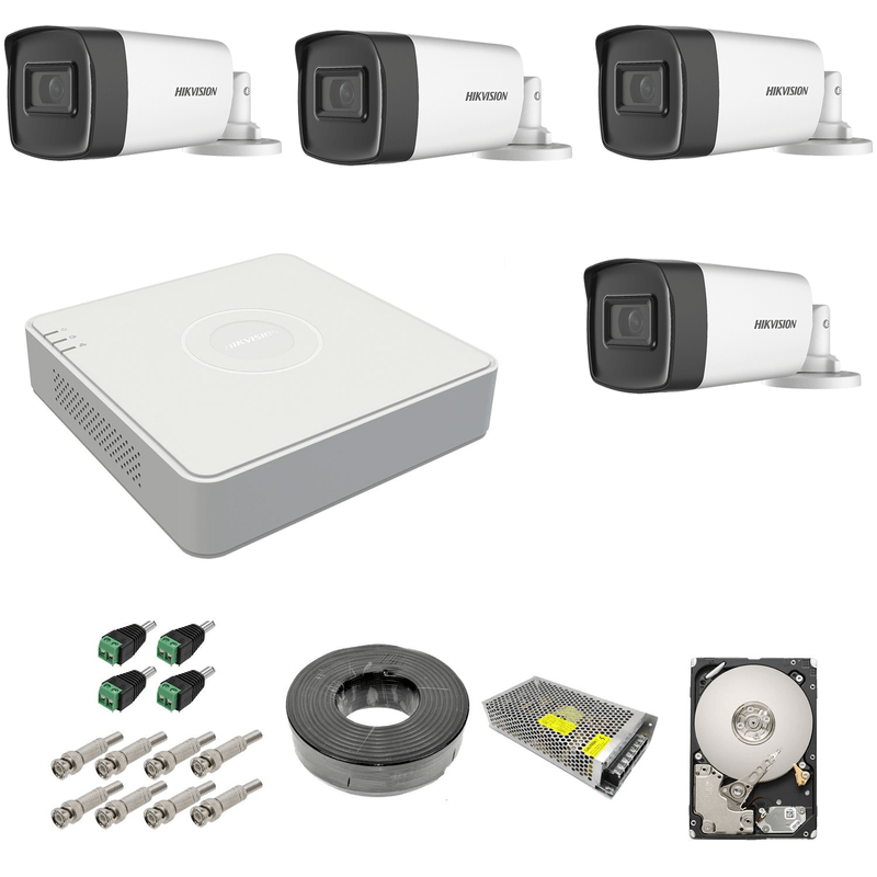KIT COMPLET 4 CAMERE SUPRAVEGHERE EXTERIOR 5MP TURBOHD HIKVISION 40 m IR
