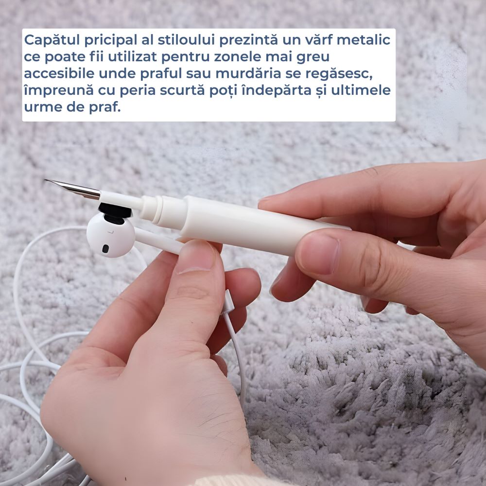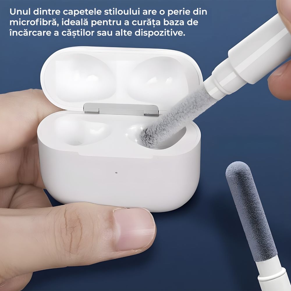 Kit de curatare 3 in 1, tip stilou, multifunctional, portabil, pentru casti, telefon, tastatura, laptop, microfibra Kit de curatare 3 in 1, tip stilou, multifunctional, portabil, pentru casti, telefon, tastatura, laptop, microfibra