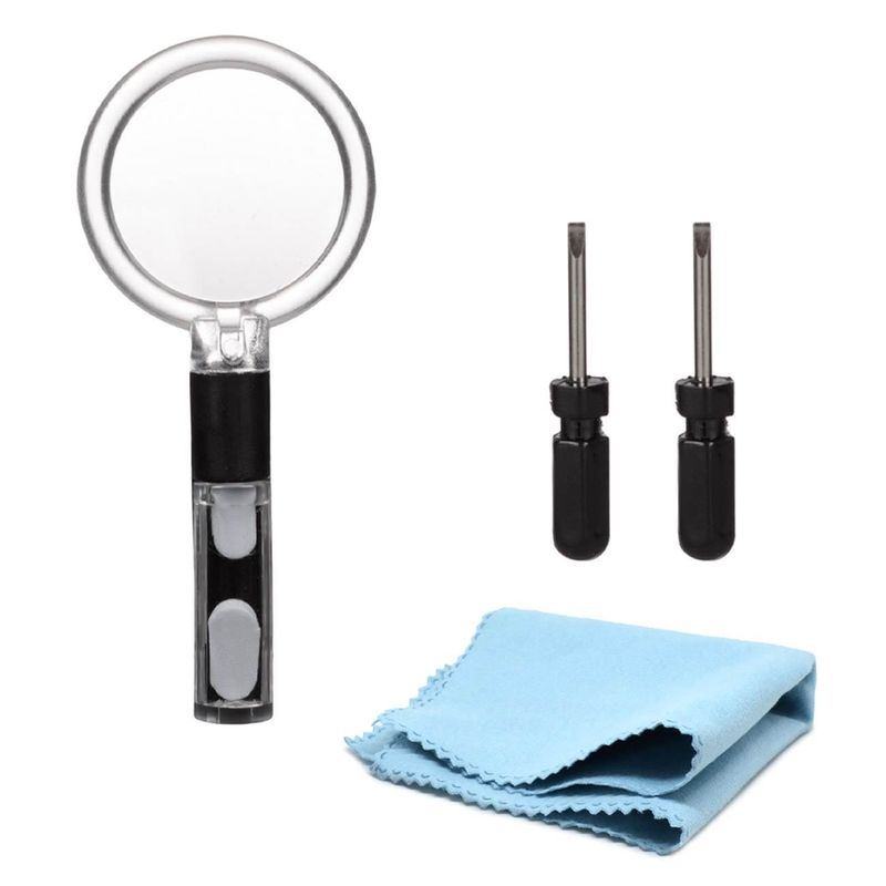 Kit reparare ochelari, set 4 piese, lupa, surubelnite, laveta Kit reparare ochelari, set 4 piese, lupa, surubelnite, laveta
