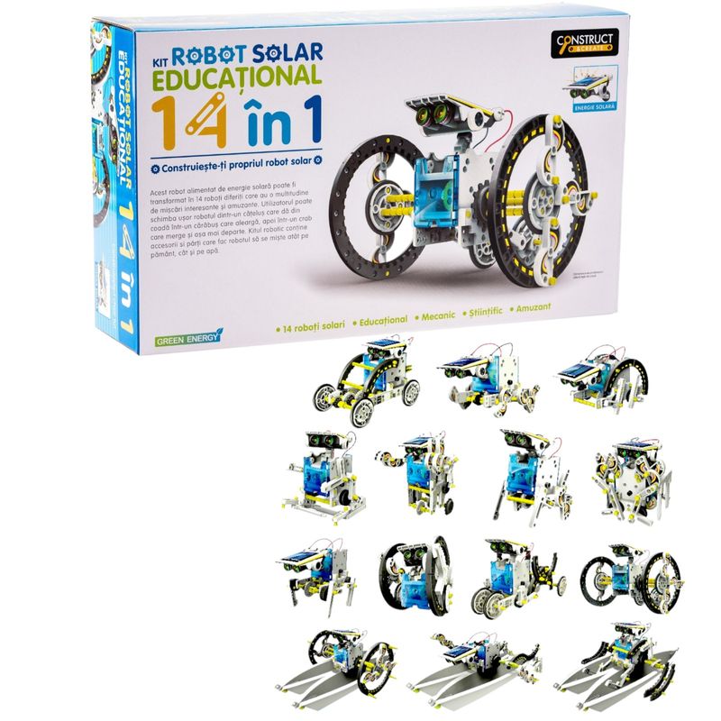 Setul Kit robot solar 14 in 1 este un cadou perfect pentru cei mici, încurajându-i să exploreze, să învețe și să se distreze în același timp. Fiind o combinație ideală între educație și divertisment, acest produs reprezintă alegerea ideală pentru a spori creativitatea și interesul copiilor față de știință și tehnologie.