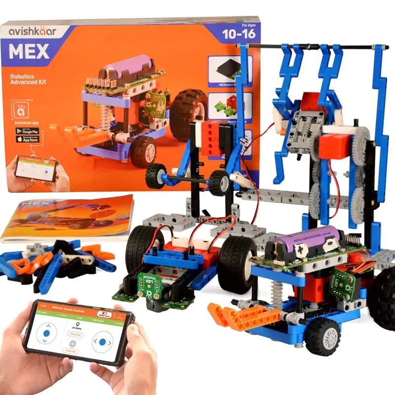 Avishkaar MEX DIY Robotics Advanced Kit, Jucarie Robot pentru Copii cu Varste intre 8-12 Ani, Set de Constructie cu Peste 500 de Piese, Kit Educational STEM, Fabricat in India