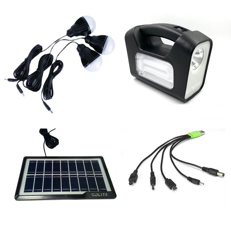 -Sistemul de iluminat Solar Home este echipat cu 3 becuri LED bazate pe driver (2 x bec Led de 3 W si 1 x bec Led de 2 W) Fiecare bec Led vine cu un fir lung de 5 metri, un comutator de pornire/oprire. Ele consuma putina energie si sunt mai luminoase decat un bec normal. Aceste becuri LED au o durata de viata mai lunga de aproximativ 25.000 de ore. Are un sistem compact cu baterie incorporata si un controler de incarcare. Punct de incarcare mobil cu cablu 5 in 1.