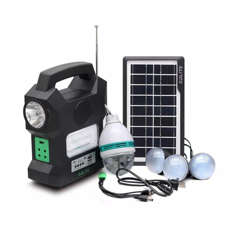 Kit solar portabil cu lanterna, 4 becuri led, radio FM, mp3 player , culoare: negru Kit solar portabil cu lanterna, 4 becuri led, radio FM, mp3 player , culoare: negru