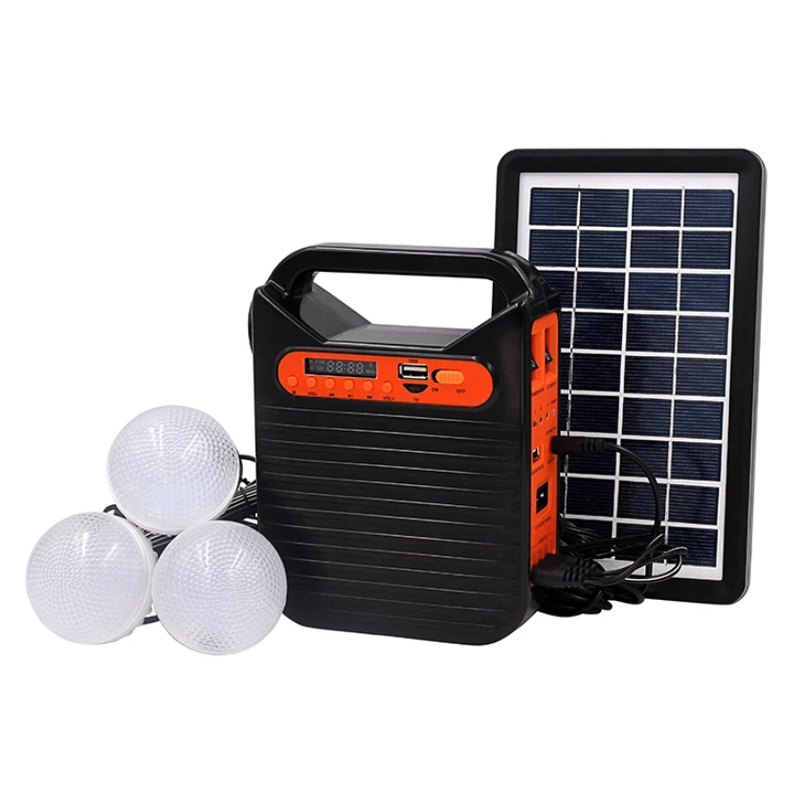 Kit Solar de Urgenta cu Acumulator, Lanterna, USB/TF, Bluetooth si 3 Becuri LED
