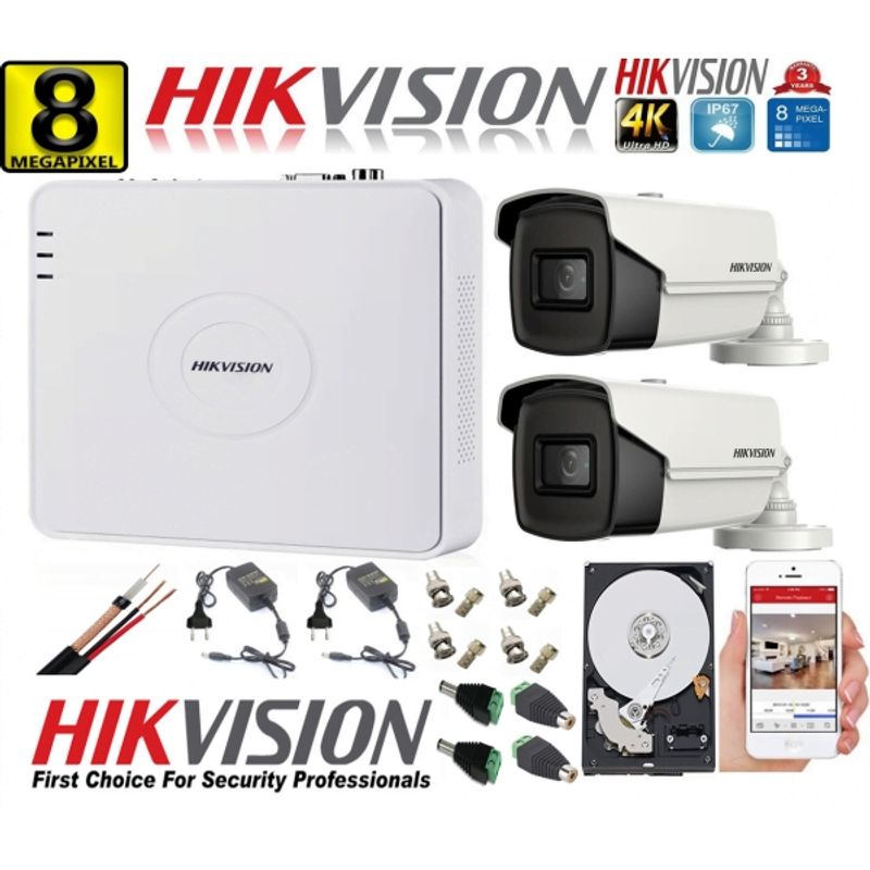 - 2x Camera 4 in 1,8MP, lentila 3.6 mm, IR 80 m - HIKVISION DS-2CE16U1T-IT5F-3.6 mm