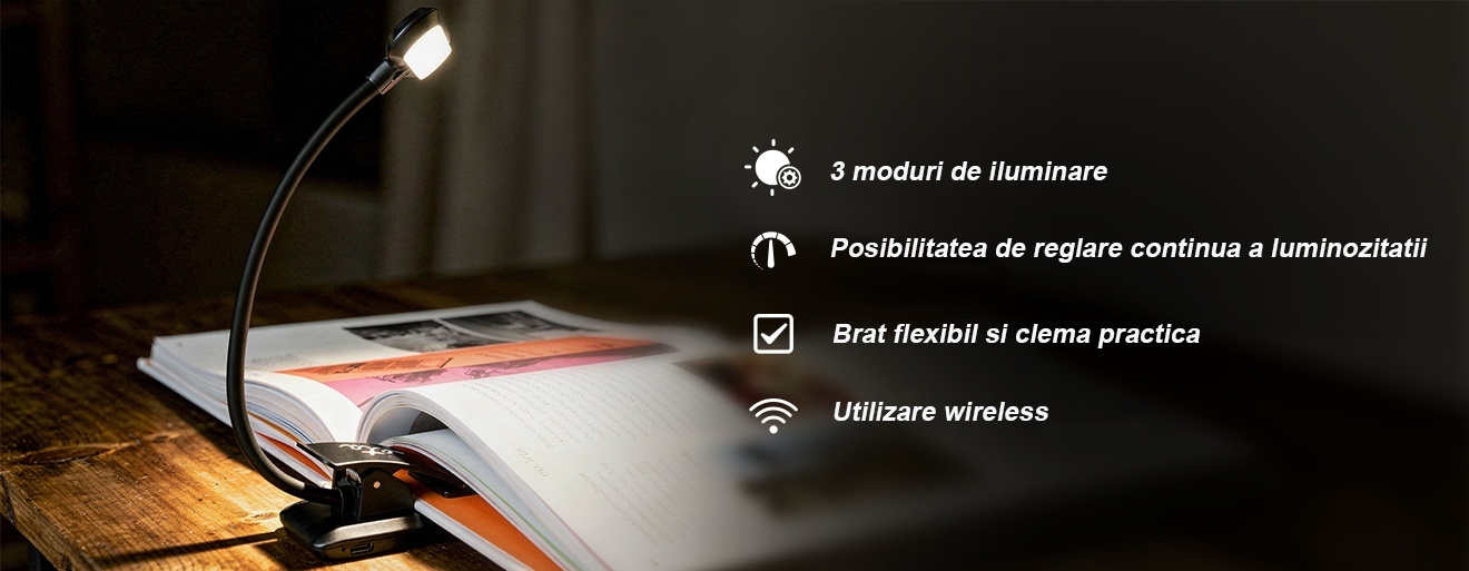 - 3 moduri de lumina – calda, neutra si rece (3000–6500 K)