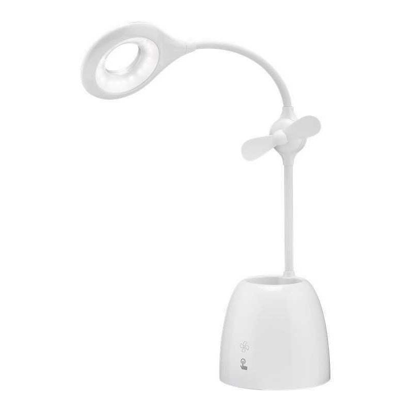 Lampa de birou cu ventilator Acumulator si Suport de pixuri alba Goobay Lampa de birou cu ventilator Acumulator si Suport de pixuri alba Goobay