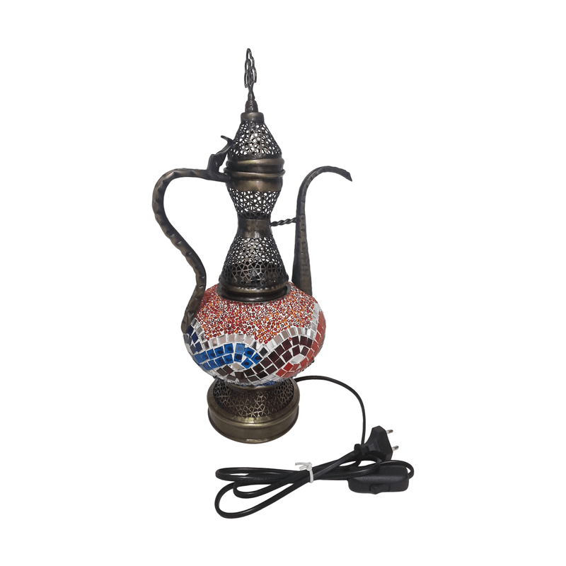 Lampa de noptiera orientala cu forma de ibric, diametru glob 16cm - Multicolor/Albastru Lampa de noptiera orientala cu forma de ibric, diametru glob 16cm - Multicolor/Albastru