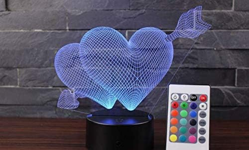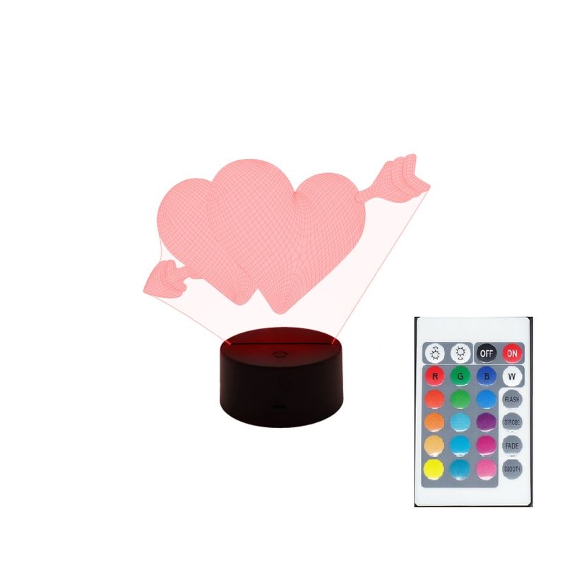 Lampa De Veghe 3D LED, 2 Inimioare/ Dragoste, 16Culori, schimbare culoare prin telecomanda, Lumina Ambientala, Alimentare USB cu Incarcator priza si/sau 3 baterii AA.