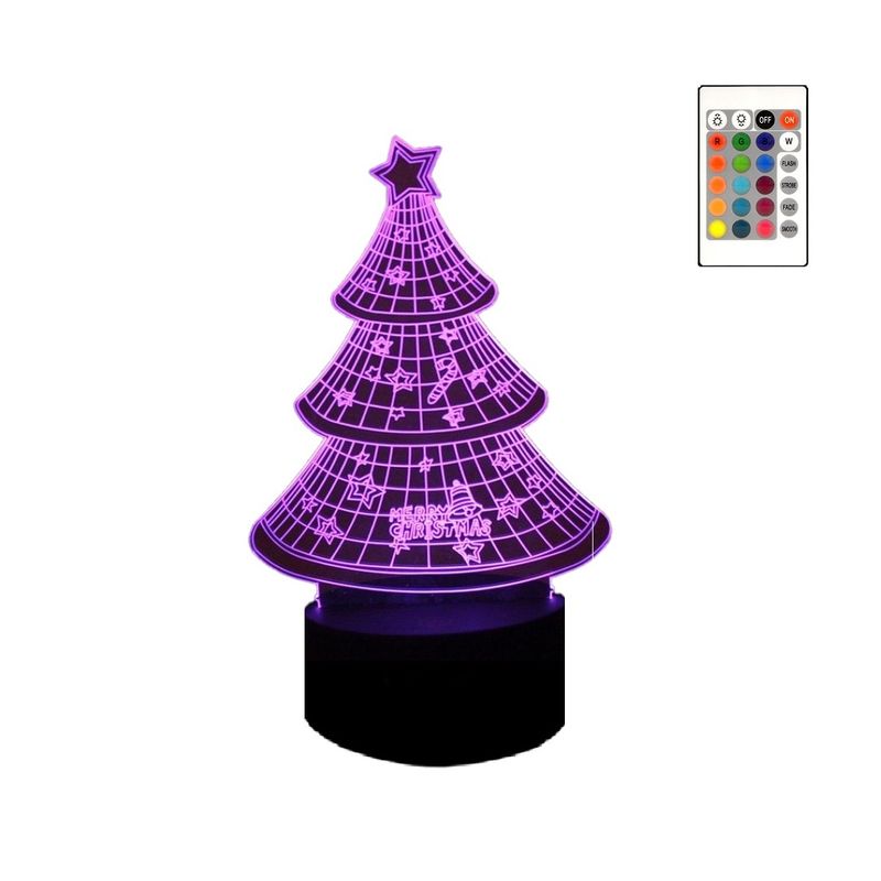 Lampa De Veghe 3D LED, Brad de Craciun, 16 Culori, schimbare culoare prin telecomanda, Lumina Ambientala, Alimentare USB cu Incarcator priza si/sau 3 baterii AA.