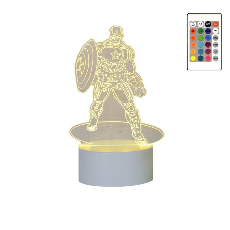 Lampa De Veghe 3D LED, Captain America, 16 Culori, cu telecomanda, Alimentare USB sau 3 baterii AA
