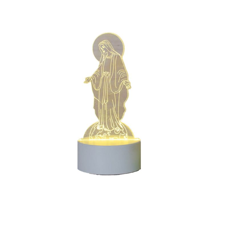Lampa De Veghe 3D LED, Fecioara Maria, 7 Culori, Lumina Ambientala, Alimentare USB cu Incarcator priza si/sau 3 baterii AA