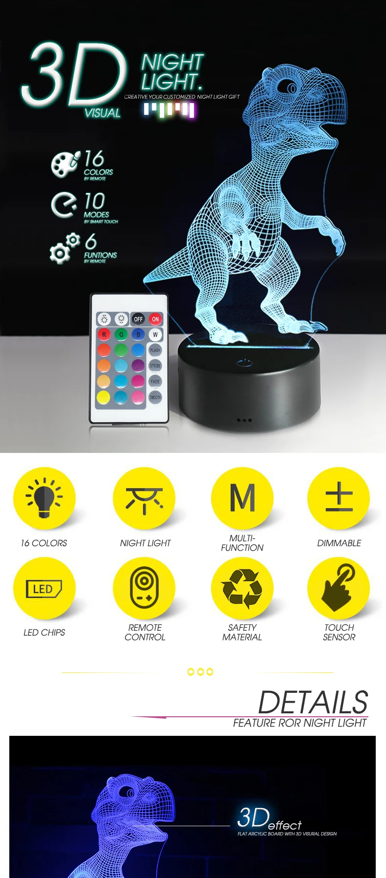 Lampa 3D cu 16 culori are un design placut si modern ce poate personaliza orice noptiera, birou sau geam.