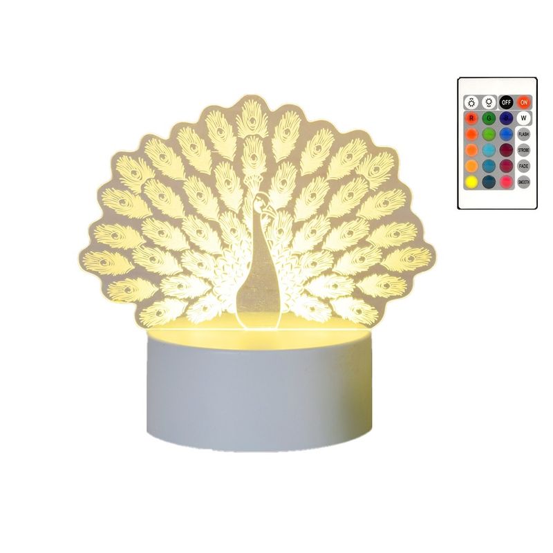 Lampa De Veghe 3D LED, Paun, 16 Culori, schimbare culoare prin telecomanda, Lumina Ambientala, Alimentare USB cu Incarcator priza si/sau 3 baterii AA