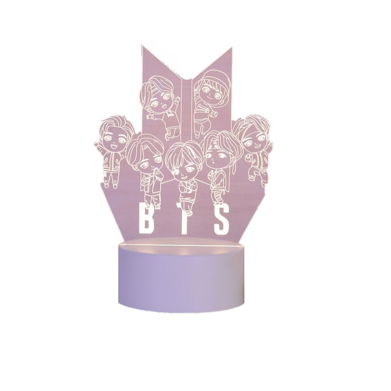 Lampa De Veghe 3D LED, Trupa BTS, 7 Culori, Lumina Ambientala, Alimentare USB cu Incarcator priza si/sau 3 baterii AA