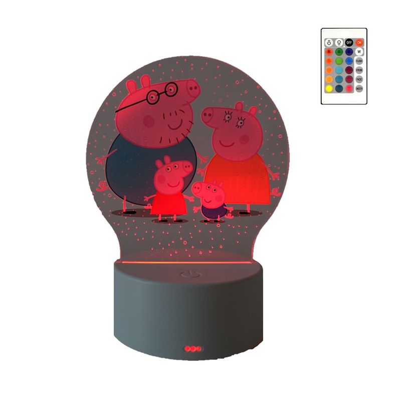 Lampa De Veghe LED, Peppa Pig Family, 16 Culori, cu telecomanda, Lumina Ambientala, Alimentare USB sau 3 baterii AA