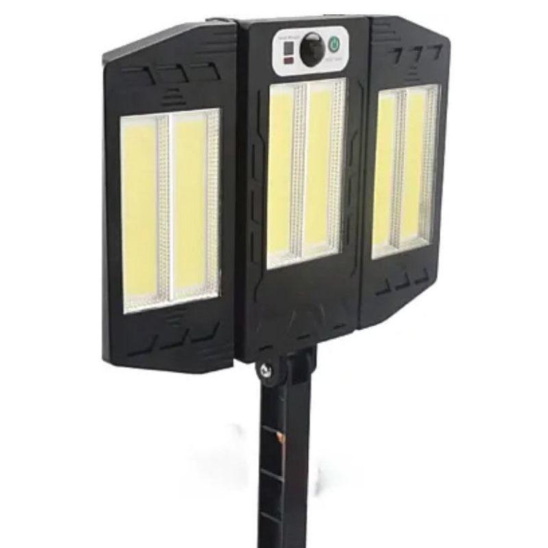 Lampa solara tripla 6 LED COB mare cu senzor de miscare si telecomanda este o solutie eficienta si convenabila pentru iluminatul exterior al casei tale. Aceasta lampa inovatoare utilizeaza energia solara pentru a se incarca in timpul zilei si pentru a oferi iluminat puternic si sigur pe durata noptii, fara a necesita alimentare electrica sau fire complicate.
