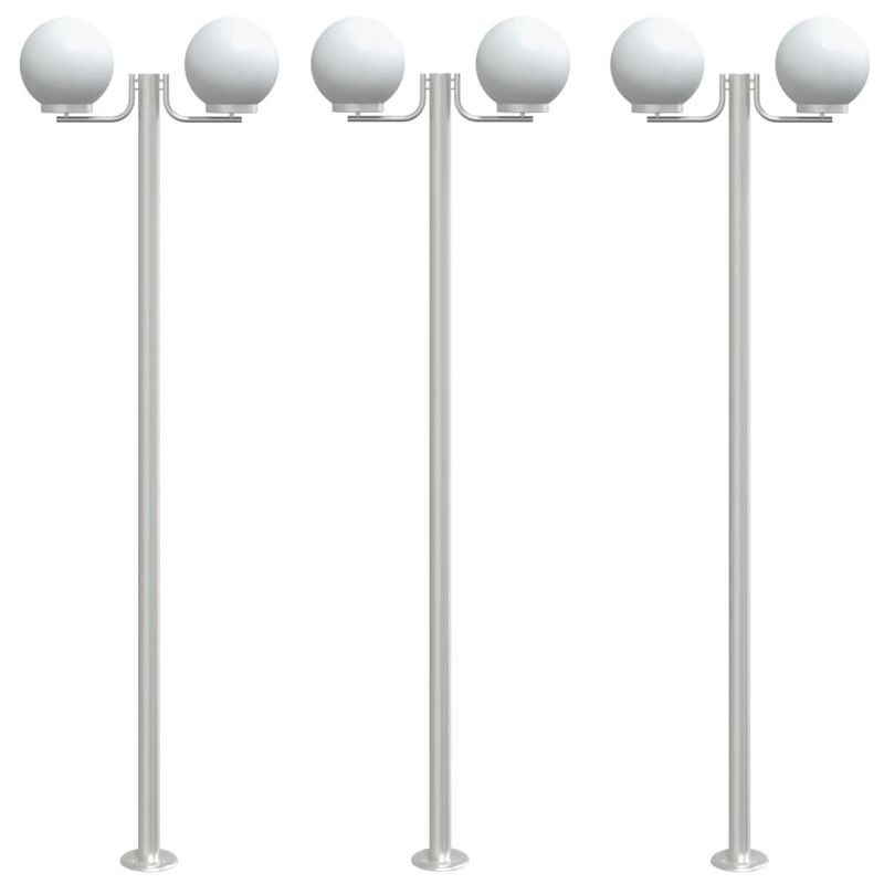 Lampi exterioare de podea 3 buc argintiu 215 cm otel inoxidabil Lampi exterioare de podea 3 buc argintiu 215 cm otel inoxidabil