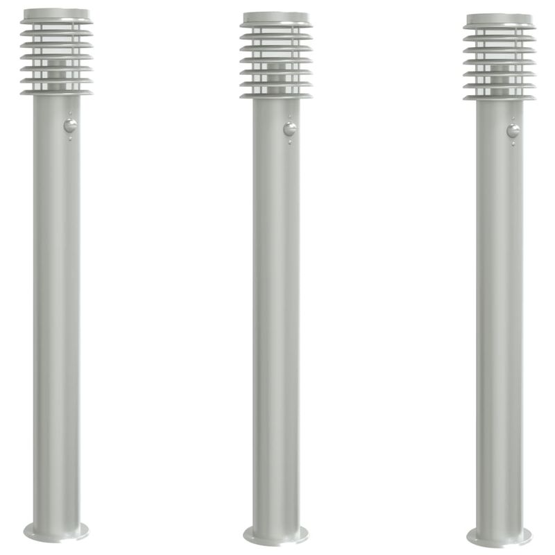 Lampi exterioare de podea senzor 3 buc argintiu 110cm otel inox Lampi exterioare de podea senzor 3 buc argintiu 110cm otel inox